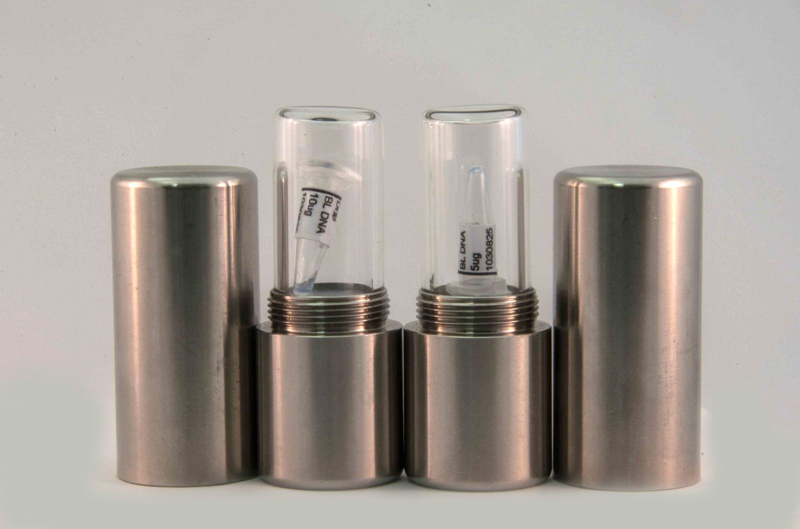 基因在特選的容器乾燥後, 置入硼砂玻管, 經抽氣充氮密封, 再放入醫療級不鏽鋼管, 防止水氣空氣進入, 以永久保存.